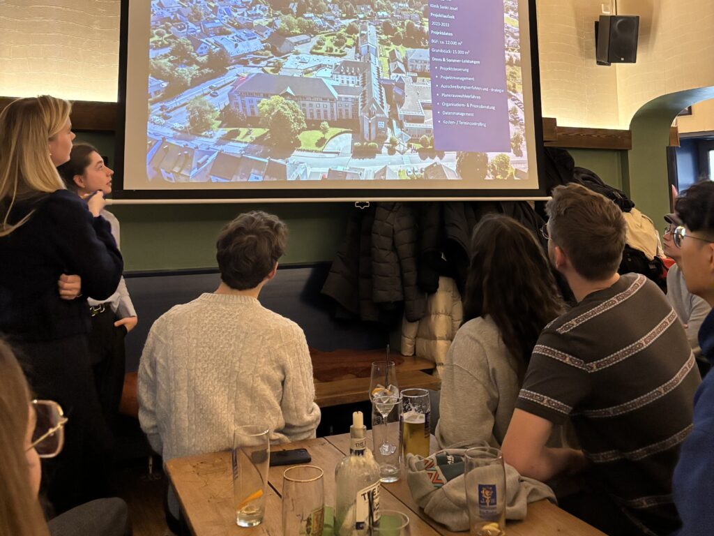 De 27. November hu mir den Owend zesummen mat eisem Partner Drees & Sommer Luxembourg verbruecht. Nieft der Virstellung vun der Entreprise, kruten eis Memberen virun allem vill Informatiounen iwwert méiglech Stageplazen oder Tipps fir d’Aarbechtsliewen. An och no der Presentatioun konnt jiddereen bei guddem Iessen an Drénken weider Froe stellen.