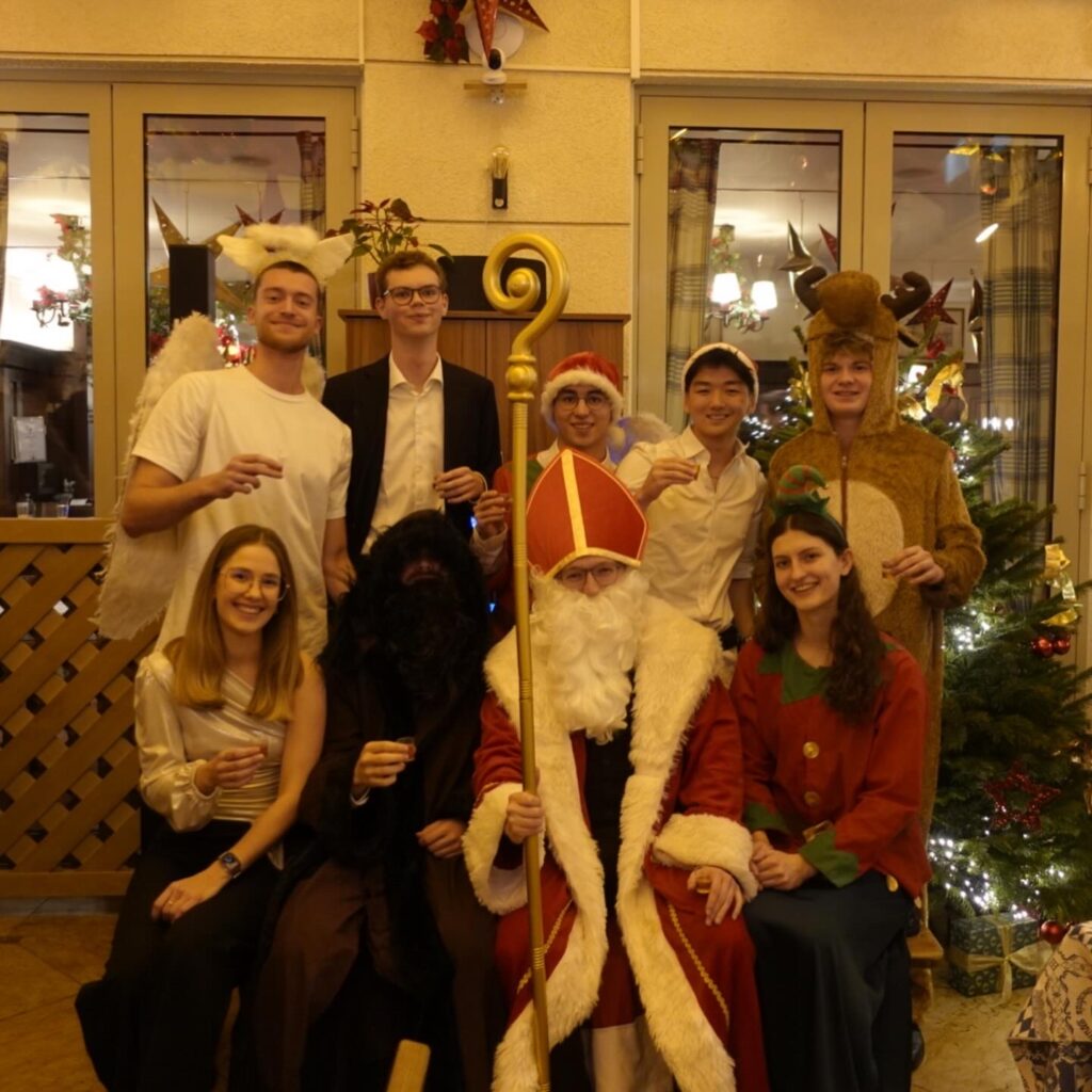 Wéi och déi lescht Joren huet eis de Kleesche mat senge Gesellen op der Chrëschtfeier den 13. Dezember feierlech beim „Zum Franziskaner“ begréisst. Jiddereen ass vum Kleeschen empfaange ginn, huet eng Foto op sengem Schouss dierfe maachen an en Äppel-Kanéil Shot mat him drénken. 🎅👼